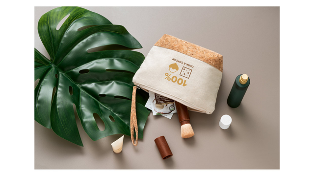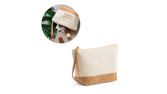 Bolsa de cosméticos em 100% de algodão e cortiça (280 g/m²)