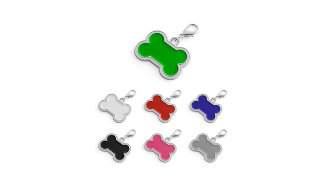 Chaveiro em formato de osso. Ideal para identificar o seu animal de estimação. 32 x 22 x 2 mm