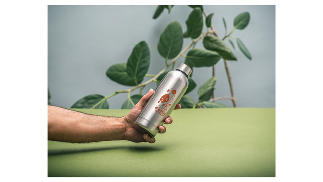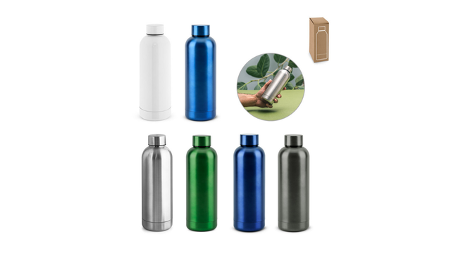 Garrafa em aço inox 90% reciclado de parede dupla térmica