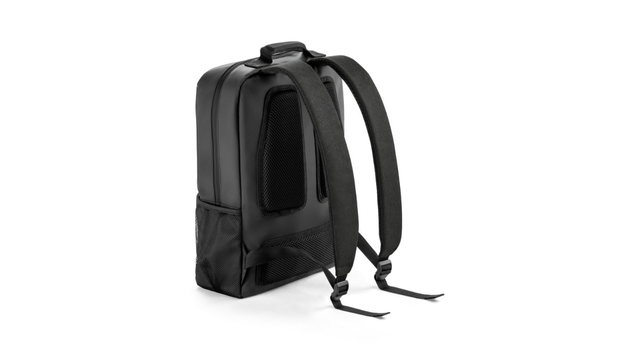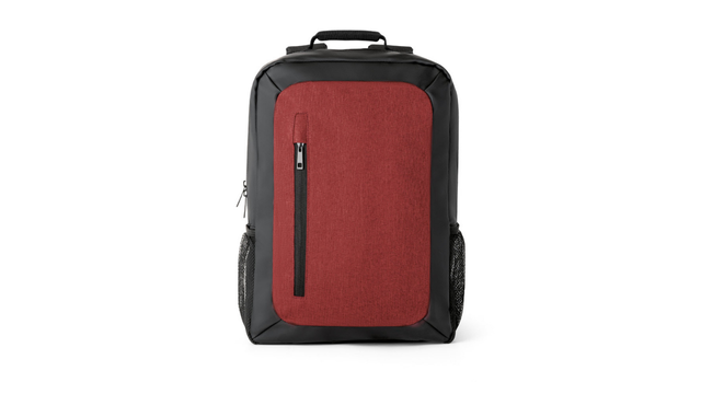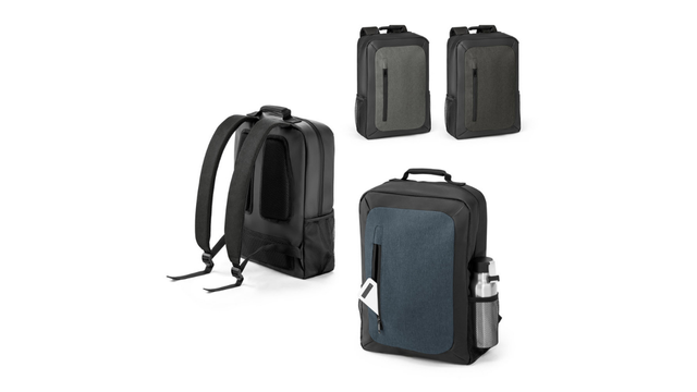 Mochila para notebook em 600D de alta densidade e 600D com revestimento resistente à água. Compartimento principal almofadado com divisória para notebook até 15.6”. Bolso frontal com zíper e dois bolsos laterais em tela mesh. Parte posterior almofadada, com sistema de apoio acolchoado para as costas e alças almofadadas. Capacidade até 10 L. 280 x 400 x 110 mm