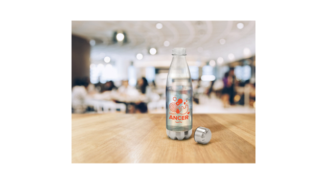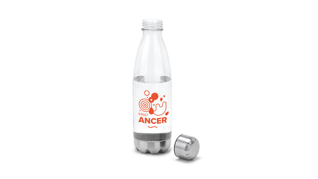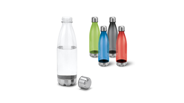 Squeeze em AS, com tampa e base em aço inox. Capacidade até 700 mL. Caixa branca 94670 vendida opcionalmente. Certificação EU Food Grade. ø74 x 265 mm