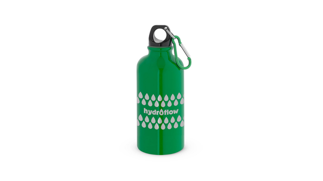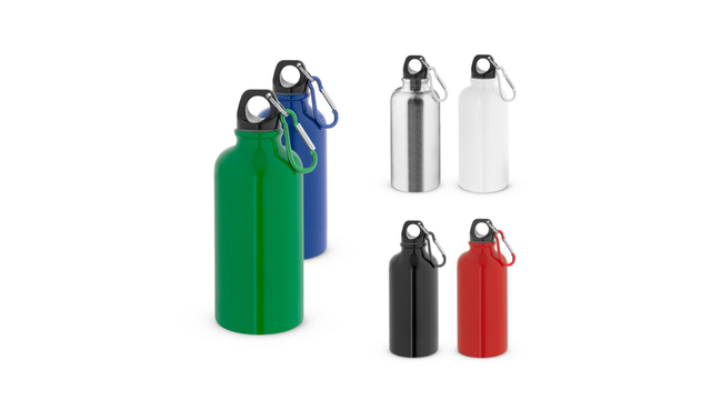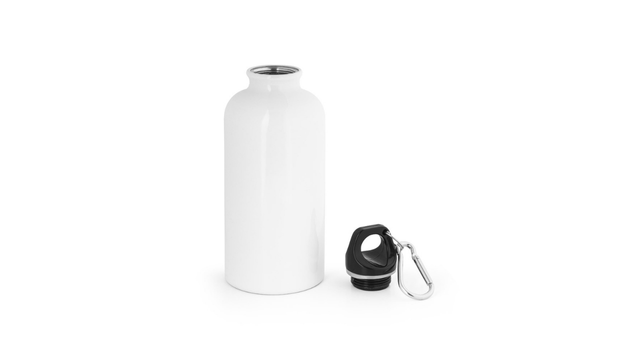 Squeeze esportiva em aço inox, de parede simples e acabamento brilhante. A tampa tem um mosquetão que facilita seu transporte ou pode ser pendurado numa mochila. Capacidade até 560 mL. Caixa branca 94657 vendida opcionalmente. Certificação EU Food Grade. ø72 x 183 mm